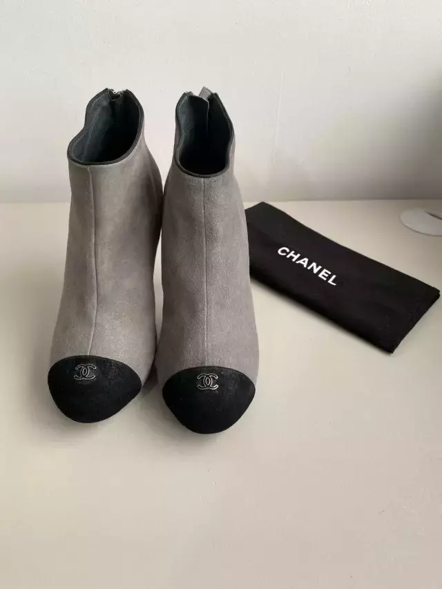 Ankle Boot Chanel Bicolor Camurça Cinza e Preto - Second Hand